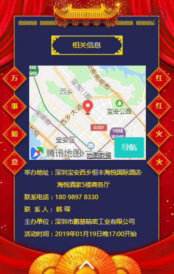 尊敬的嘉賓:衷心的感謝您一直以來(lái)對(duì)我公司的關(guān)心、支持和厚愛!歲月的年輪即將轉(zhuǎn)過(guò)2018年,嶄新的2019年正在踏著春天的步伐向我們走來(lái)。日月開新元,天地又一春,在這新春佳節(jié)來(lái)臨之際,特邀您出席我公司尾牙暨新春團(tuán)拜會(huì),恭候您的光臨!
