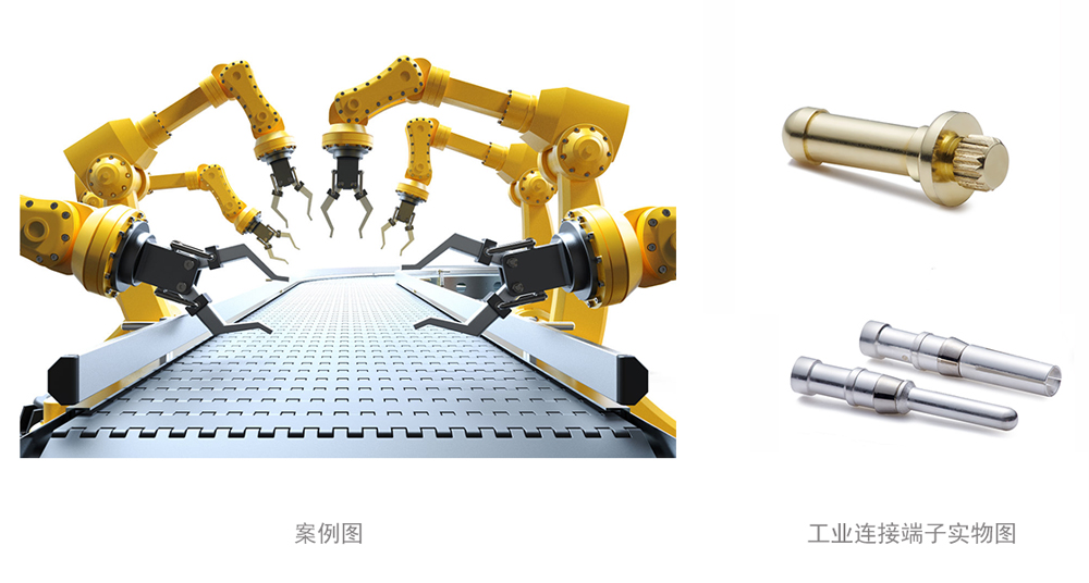 工業(yè)連接端子:廣泛應(yīng)用于自動(dòng)化設(shè)備,工業(yè)手臂機(jī)器人,大型工業(yè)設(shè)備等各領(lǐng)域連接器中;使用材料有黃銅、錫青銅、鈹銅等。表面可鍍金、鍍銀。在設(shè)備連接中起到信號(hào)與電源同時(shí)兼容的作用,具有信號(hào)傳輸快,連接穩(wěn)定、抗震強(qiáng)等特性